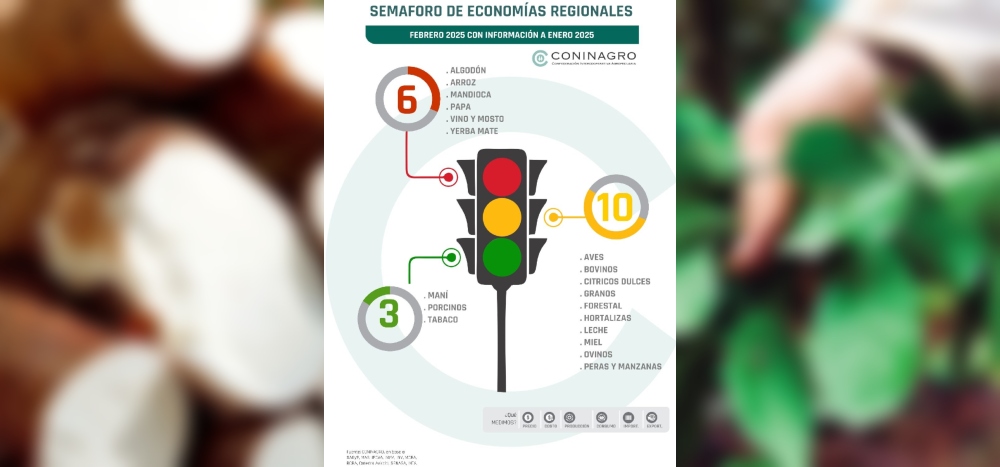 CONINAGRO publicó una nueva edición de su informe “Semáforo de Economías Regionales”, con datos correspondientes al enero de 2025.