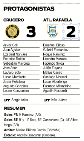 Parecía todo terminado, Crucero saboreaba ese trago amargo, pero en el minuto 53 se encontró con un tiro libre, Soto sacó el remate y la pelota dio en la mano de Soloa. El árbitro no dudó en cobrar la pena máxima y, desde los doce pasos, Leonel Canzoniero sacó el disparo junto a un palo, que se metió con algo de suspenso para desatar el festejo local. Fue, literal, la última jugada del partido ya que el juez dio por terminado el juego una vez ejecutado el tiro.