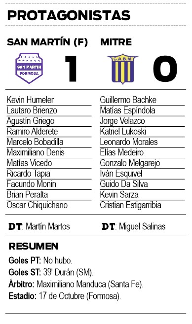 Casi 14 meses tuvieron que pasar para que Bartolomé Mitre conozca de la derrota. Estuvo a pocos minutos de traerse un importante empate de Formosa, en la tercera fecha del Torneo Federal A, pero San Martín pegó en el epílogo, se impuso 1-0 y cortó la extensa racha positiva de los misioneros.