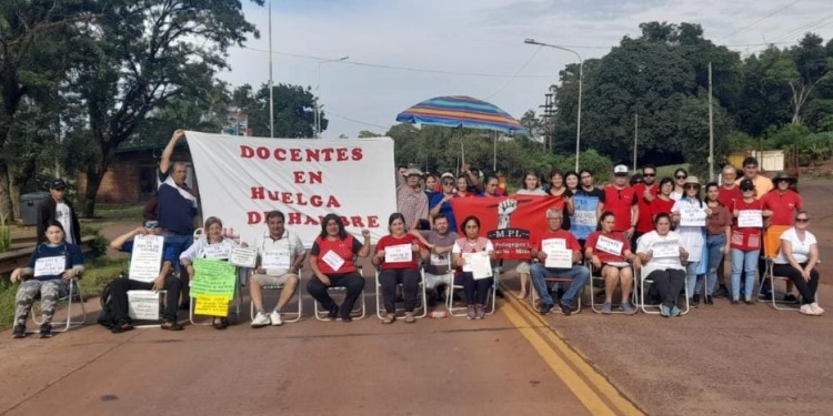 Docentes del Movimiento Pedagógico de Liberación (MPL) iniciaron este lunes una huelga de hambre en la rotonda sur de Montecarlo, en reclamo de mejores condiciones laborales.