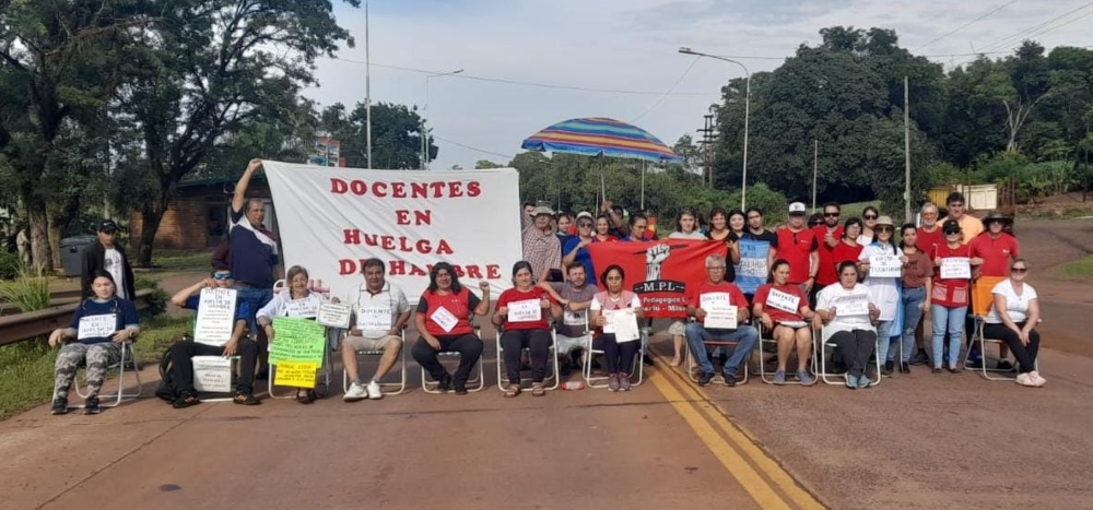 Docentes del Movimiento Pedagógico de Liberación (MPL) iniciaron este lunes una huelga de hambre en la rotonda sur de Montecarlo, en reclamo de mejores condiciones laborales.