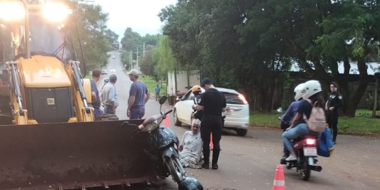 Este lunes por la tarde, en la localidad de Oberá, se produjo un siniestro vial entre una motocicleta y una máquina retroexcavadora que dejó como saldo un hombre lesionado y trasladado al hospital Samic de dicha ciudad.
