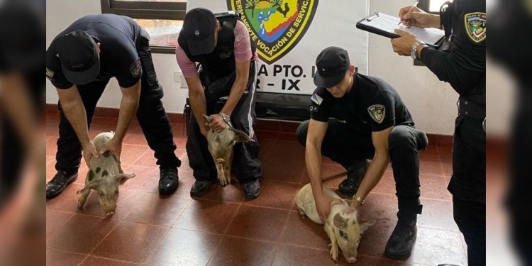 Este lunes, en la localidad de Puerto Leoni, la Policía de Misiones recuperó tres chanchitos que habían sido robados a una pareja de agricultores del barrio La Colmena.