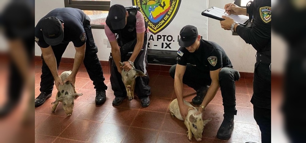 Este lunes, en la localidad de Puerto Leoni, la Policía de Misiones recuperó tres chanchitos que habían sido robados a una pareja de agricultores del barrio La Colmena.