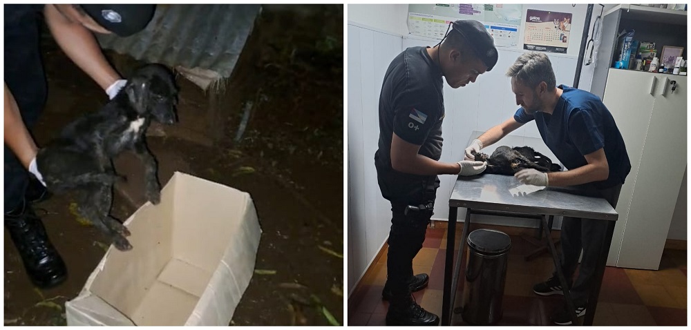 En Oberá, un perro enfermo fue abandonado frente a una casa, lo que motivó la intervención de la Policía de Misiones. Los agentes encontraron al animal en un estado crítico y decidieron trasladarlo a una veterinaria cercana para recibir atención médica especializada.