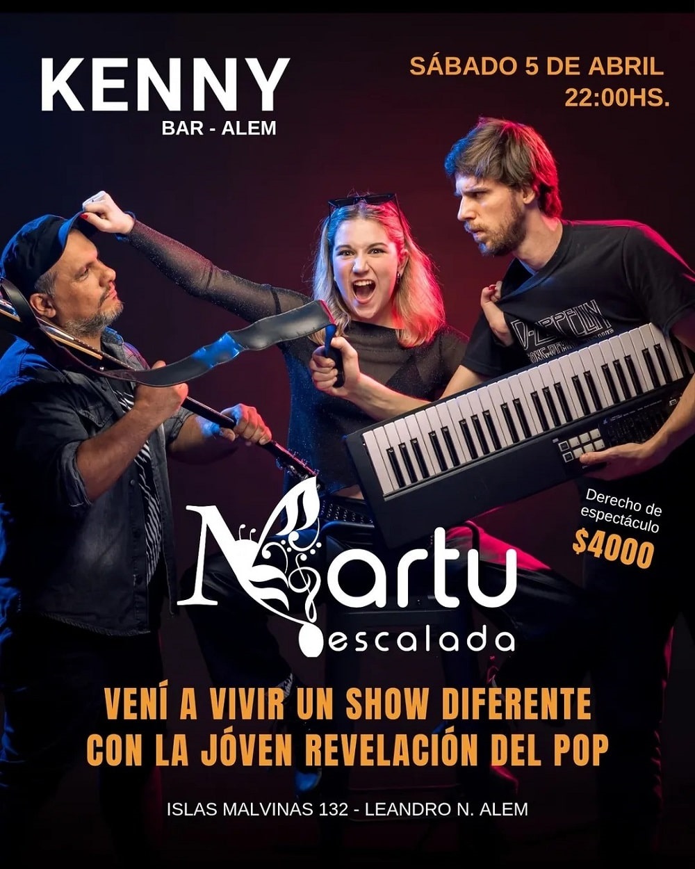 La revelación del Pop Misionero, Martu Escalada, se presenta en vivo este sábado a las 22, en Kenny Bar (Islas Malvinas 132), de Leandro Alem. Entrada $4.000.