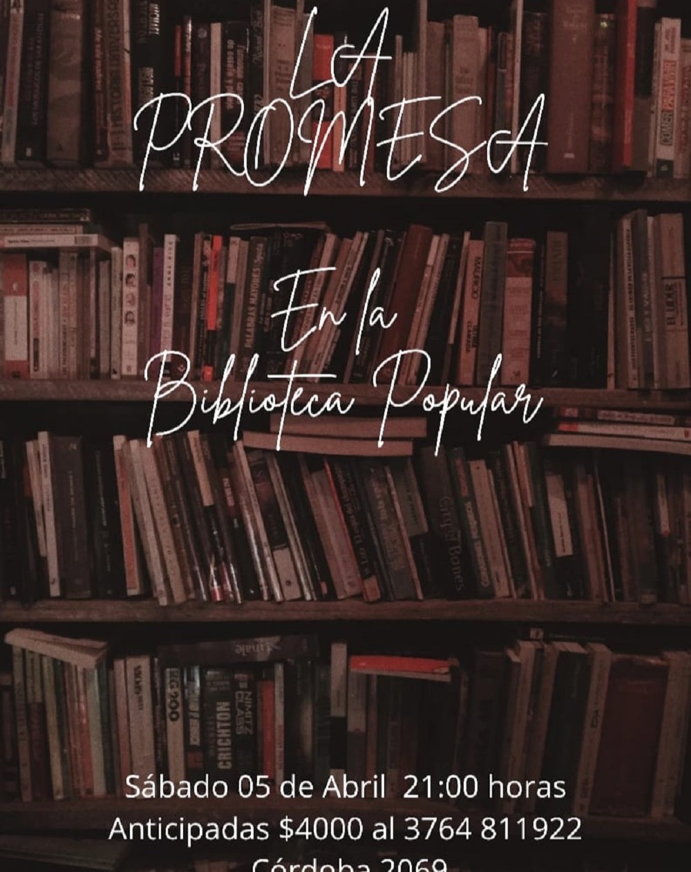 La Promesa mood band propone una noche de dulces melodías, con temas instrumentales de The Police, Bob Marley, Stevie Wonder y otros, este sábado a las 21 horas, en la Biblioteca Popular Posadas (Córdoba 2069). Anticipadas $4.000 al 376 4811922.