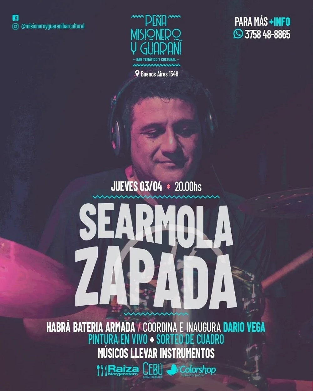 Una nueva noche de zapada de la mano de Darío Vega y con el arte en vivo de Sergio Vogler, este jueves a las 20 horas, en el espacio cultural de Buenos Aires al 1560), de Posadas. Al finalizar la noche se sorteará el cuadro entre los presentes. ᴇɴᴛʀᴀᴅᴀ: consultas y reservas al 3758 488865.