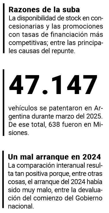 Si se toma como referencia marzo, se inscribieron 638 coches en Misiones, un 15,2% más que en febrero (554 unidades) y un 52,6% por arriba del mismo mes de 2024 cuando se anotaron 418 autos en ese período.