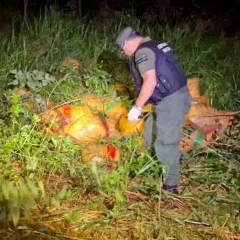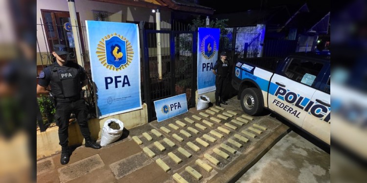 Durante recorridas preventivas en áreas rurales, efectivos de la división Unidad Operativa Puerto Iguazú de la Policía Federal Argentina (PFA) secuestraron poco más de 40 kilos de marihuana prensada que habían sido abandonados por dos personas que se dieron a la fuga en motocicleta.
