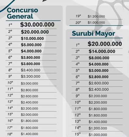 Pero no serán los únicos premios que se entregarán. Los equipos ganadores de zona se llevarán 2.000.000 de pesos, los segundos de cada zona embolsarán 1.400.000 pesos, los terceros 1.200.000 pesos, los que quedan en el cuarto lugar recibirán 1.000.000 y los que clasifiquen en el quinto lugar de cada una de las zonas, obtendrán 800.000 pesos. La dama mejor clasificada también tendrá un premio en efectivo de 800.000 pesos.