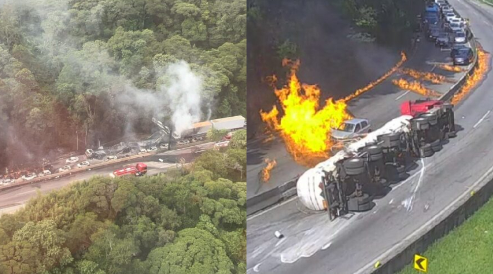 La PRF informó que el líquido que transportaba el camión era etanol. Según la PRF, el camión volcó en el kilómetro 233, lo que fue seguido de una explosión.