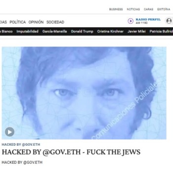 El sitio web de Perfil fue hackeado el último martes por la mañana en lo que se identificó como un “defacement attack”. Alrededor de las 8:30, un usuario logró vulnerar el sistema de publicación del medio, alteró titulares y publicó una imagen del Documento Nacional de Identidad de Javier Milei, aparentemente sustraída del Sistema Federal de Comunicaciones Policiales (SIFCOP) el pasado viernes 5 de abril. Entre los cambios en las notas se leía la firma “HACKED BY @GOV.ETH” y se incluían mensajes antisemitas, como la referencia al Presidente con el apodo “Jewlei”.