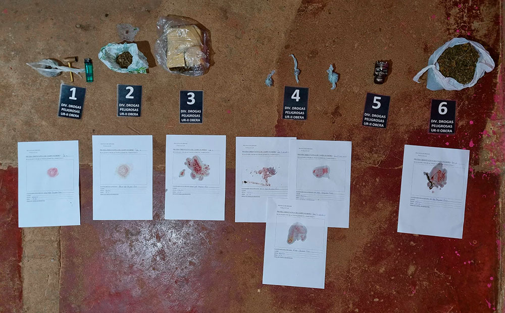 En el lugar, bajo directivas del Juzgado de Instrucción Nro 1 de Oberá, los agentes procedieron a la detención del dueño del inmueble, un hombre de 30 años. También secuestraron seis bolsas de polietileno y un ladrillo que en su interior contenían marihuana. Luego de realizar el narcotest y los pesajes correspondientes, las autoridades confirmaron que se trataba de cannabis sativa. También incautaron una pipa y otros elementos para el embalaje de droga.
