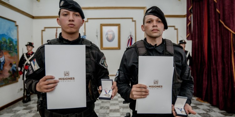 El gobernador Hugo Passalacqua encabezó este jueves el acto de entrega de la Medalla al Mérito “General Don Andrés Guacurarí y Artigas” a los agentes de la División Motorizada, Héctor Manuel Piñeyro y Enrique Fernando Ramírez, quienes salvaron a una mujer en el barrio Itaembé Guazú de Posadas.