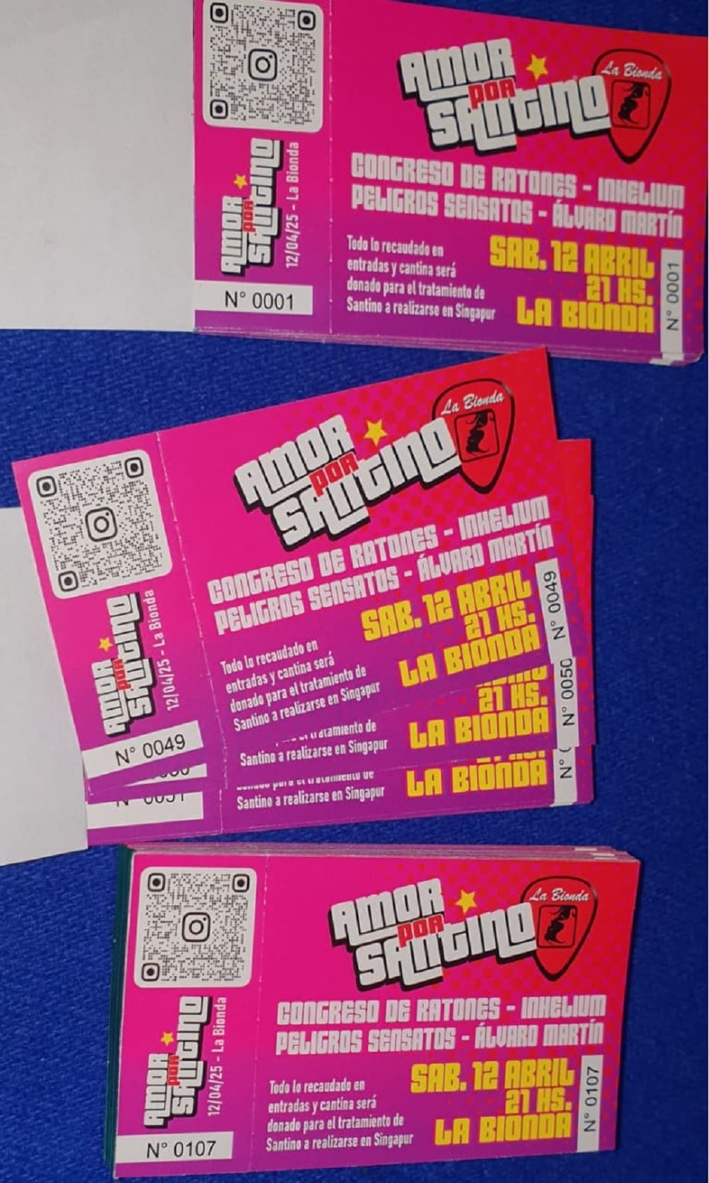Las anticipadas tienen un costo de $3.000 o 2 por $5.000. También podés transferir a través del alias: AMORPORSANTINO a nombre de la mamá, Rodríguez Natalia Soledad.