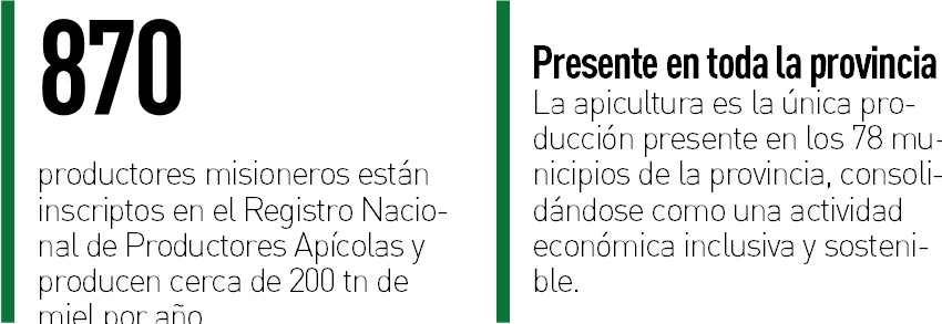 En Misiones la extensión del monte nativo, la apicultura local evidencia un gran potencial de expansión, tanto para la producción de miel como para la de los otros productos de la colmena: polen, propóleos, jalea real y, en especial, núcleos, por tratarse de una zona limpia de enfermedades.