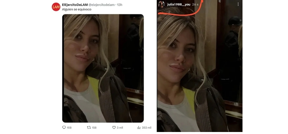Esta cuenta, con el nombre de @julia1988__you, alimentó viejos rumores sobre su presencia en cuentas paralelas en las redes sociales. La imagen en cuestión muestra a Wanda junto a su novio, el cantante L-Gante. Aunque la misma foto también fue publicada en su cuenta oficial.