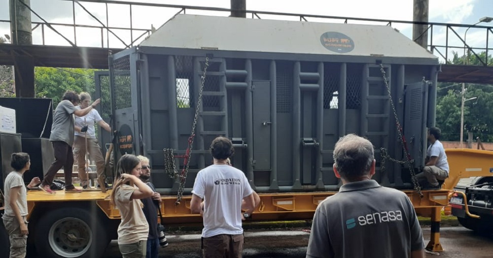 Después de pasar exitosamente cada una de las pruebas y de cumplir con un período de adaptación y entrenamiento para familiarizarse con la caja de transporte, el lunes 14 de abril Pupy emprendió un viaje de 2.700 kilómetros hacia Mato Grosso, acompañada por personal especializado y con varias paradas preestablecidas.