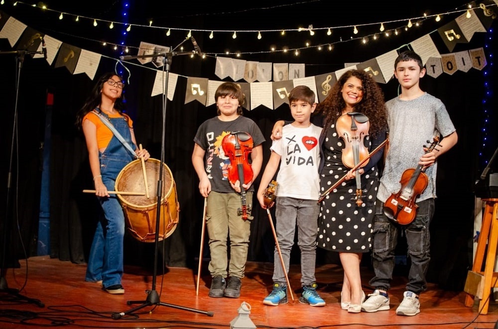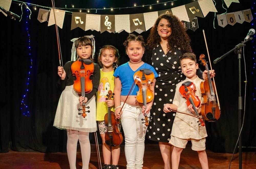 La escuela taller nació en pandemia a pedido de Teo, un niño con una enfermedad terminal, que quería poder tocar el violín antes de morir. Así ocurrió, y a este joven alumno le fueron siguiendo otros, quienes hoy asisten, en modalidad de taller y sin ninguna obligación, sino más bien un compromiso