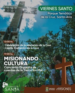Santa Ana: En el Parque Temático de la Cruz, a las 17 hs, se presentará “Misionando Cultura”, un espectáculo sinfónico con participación de niños, los Grillitos Sinfónicos, artistas misioneros y el Conjunto de Cuerdas de la Tierra Sin Mal.