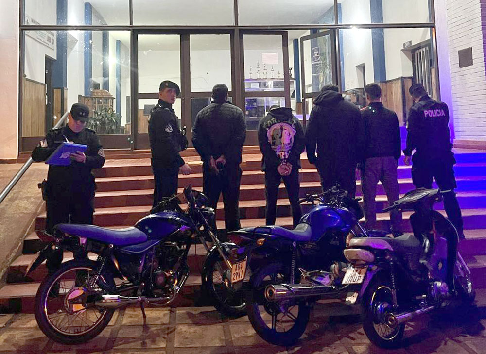 Cuatro hombres fueron detenidos en la madrugada de este jueves en Oberá tras ser sorprendidos realizando picadas y maniobras peligrosas a bordo de motocicletas, mientras ingerían bebidas alcohólicas en la vía pública. Además, se incautaron tres motos por infracciones a la Ley Nacional de Tránsito N.º 24.449.