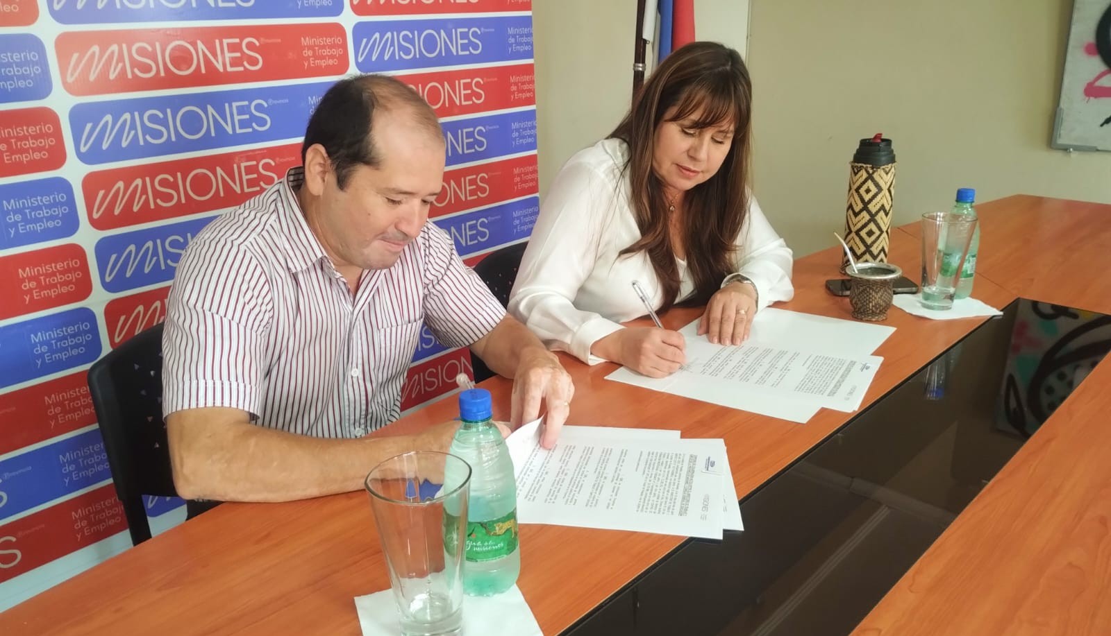 En el marco de las políticas públicas que impulsa el Gobierno de Misiones para fomentar el empleo y fortalecer el sector cultural, el Ministerio de Trabajo y Empleo firmó este viernes dos convenios de cooperación: uno con el Centro de Formación Profesional Itinerante Nº 2 y otro con la Asociación Misionera de Trabajadores de las Artes Visuales (AMTAV), este último en el marco del Programa Rubí Gularte.