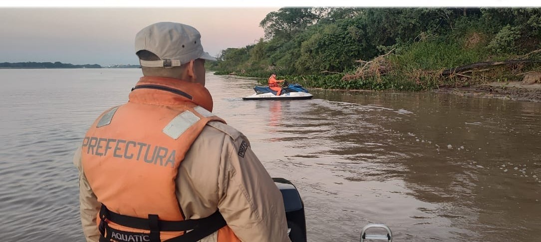La víctima, identificada como Agustín Ovando, estaba a tres kilómetros del lugar donde quedó la lancha en la que circulaba con Pablo Ovando, de 44 años, guía de pesca que ahora es buscado intensamente por las autoridades.