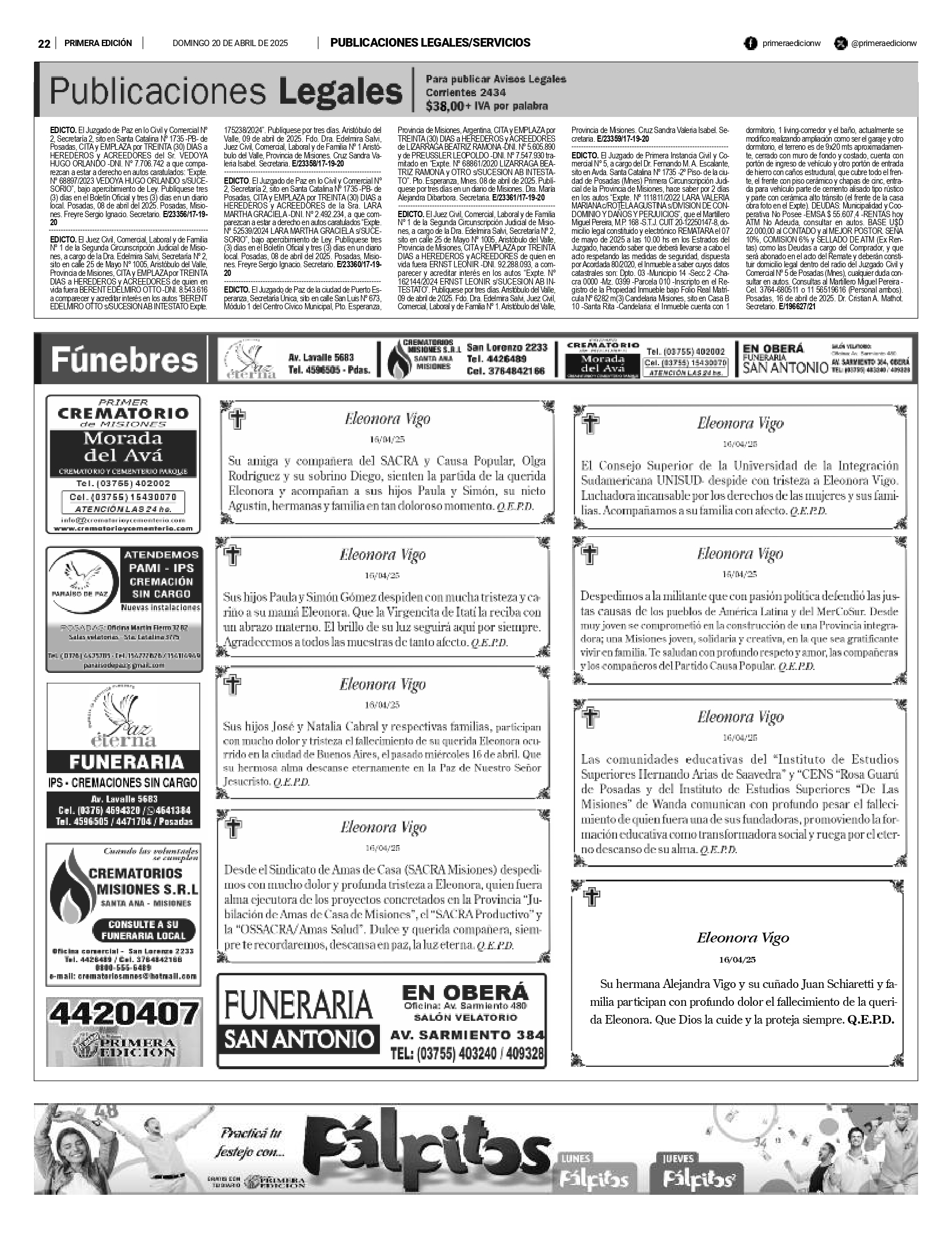 Fúnebres 20-04-2025