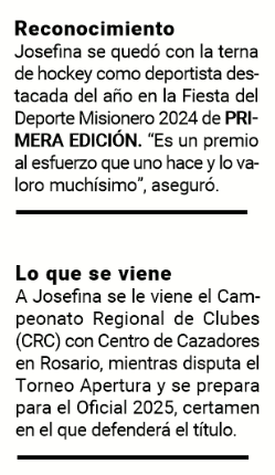 Para cerrar un 2024 ideal, Josefina se quedó con la terna de hockey como deportista destacada del año en la Fiesta del Deporte Misionero 2024 de PRIMERA EDICIÓN. No pudo estar presente porque justo entonces se encontraba en el CeNARD en plena concentración nacional.
