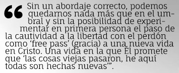 Sin un abordaje correcto, podemos quedarnos nada más que en el umbral y sin la posibilidad de experimentar en primera persona el paso de la cautividad a la libertad con el perdón como “free pass” (gracia) a una nueva vida en Cristo. Una vida en la que Él promete que “las cosas viejas pasaron, he aquí todas son hechas nuevas”.
