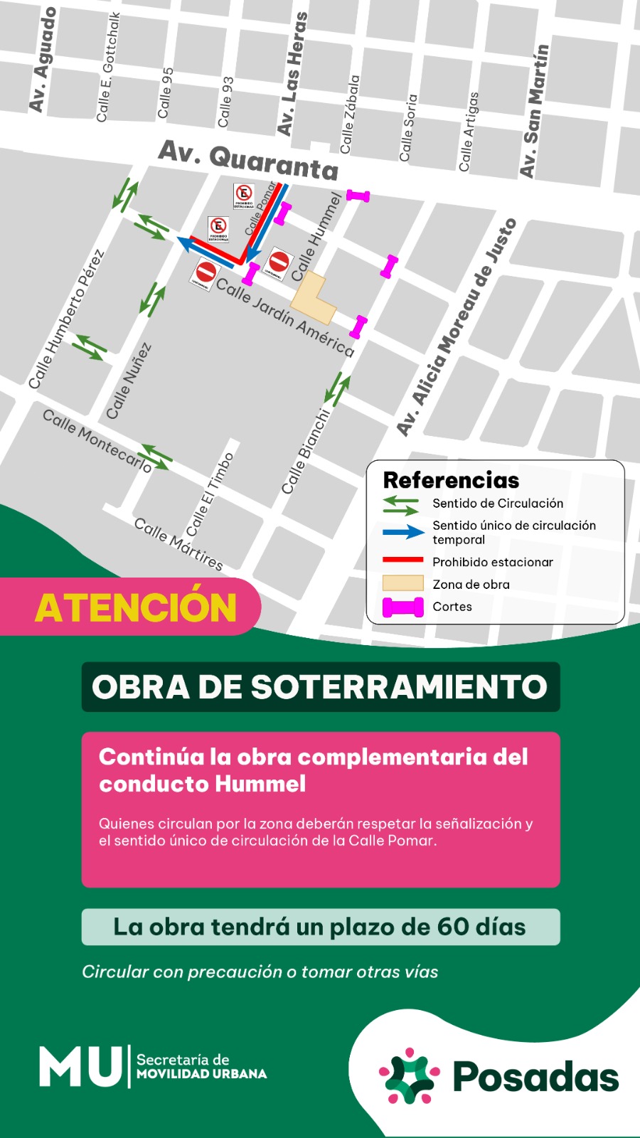 - La calle Jardín América quedará totalmente cortada entre las arterias Pomar y Bianchi, quedando habilitada solo en sentido Este-Oeste entre Pomar y Nuñez.
