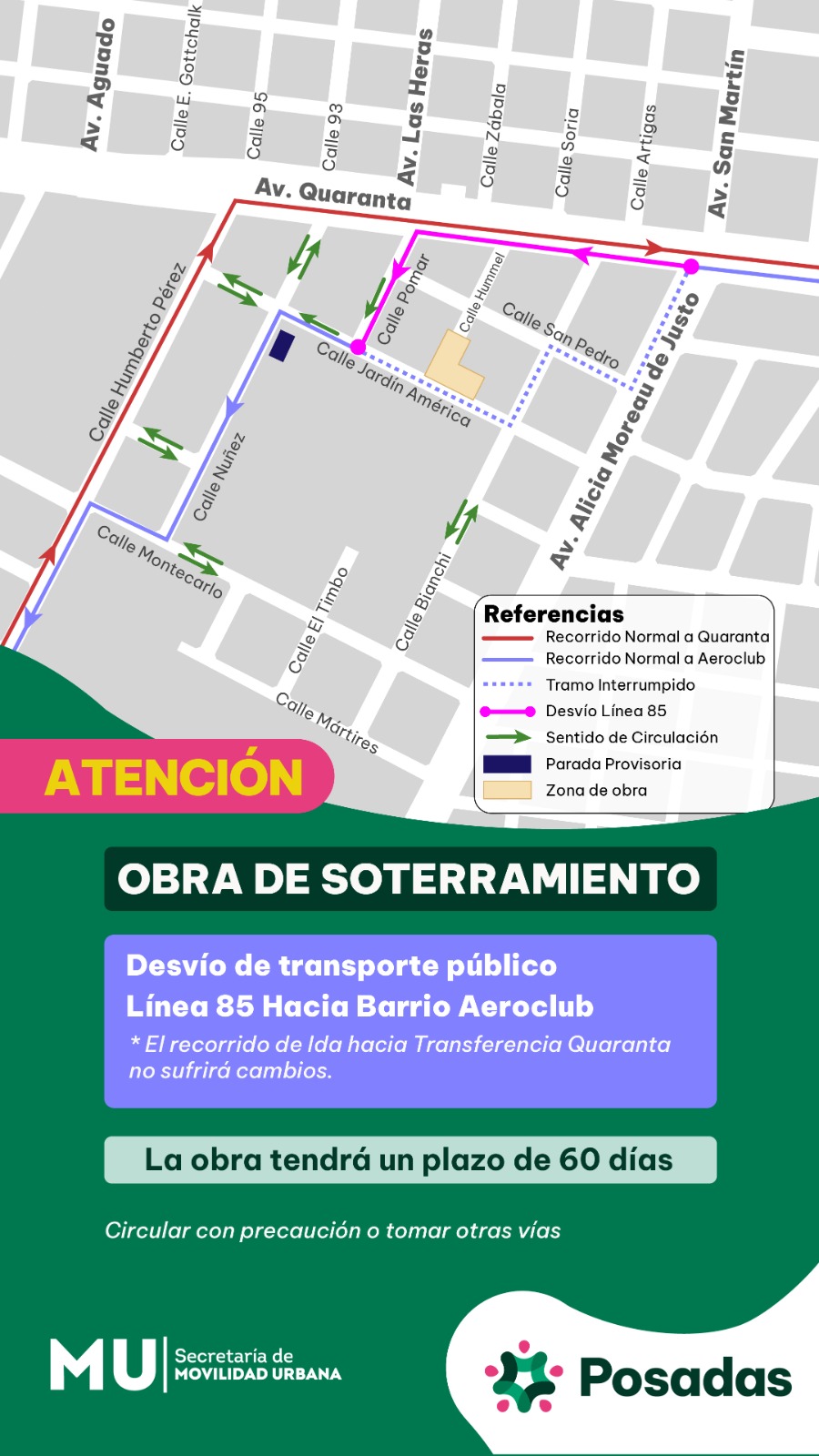 La línea 85 “Barrio Aeroclub” se verá afectada en su recorrido durante el tiempo de la obra.