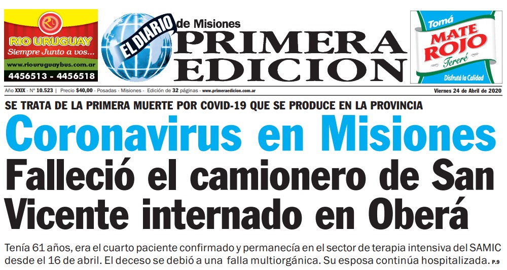 Héctor Vidotto, camionero de 61 años oriundo de San Vicente, se convertía el 23 de abril de 2020, alrededor de las 21:30, en la primera víctima mortal del COVID-19 en Misiones.