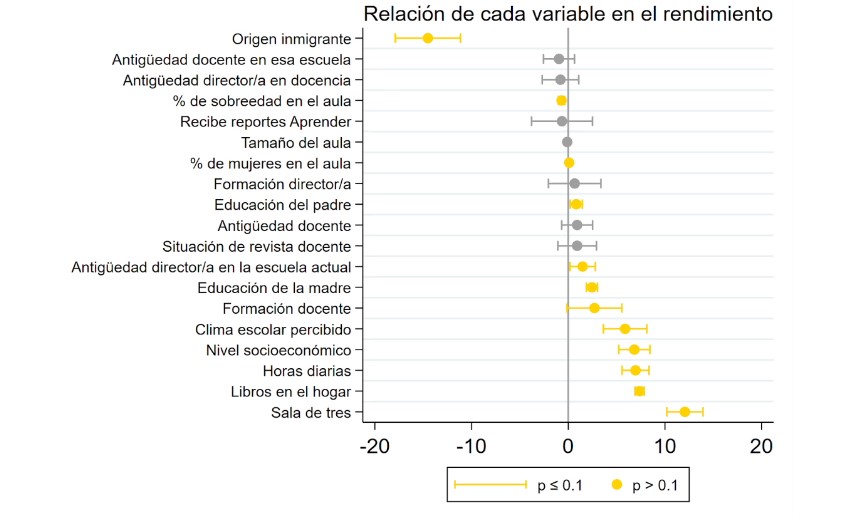 Todas estas variables se asocian positivamente con mejores desempeños.