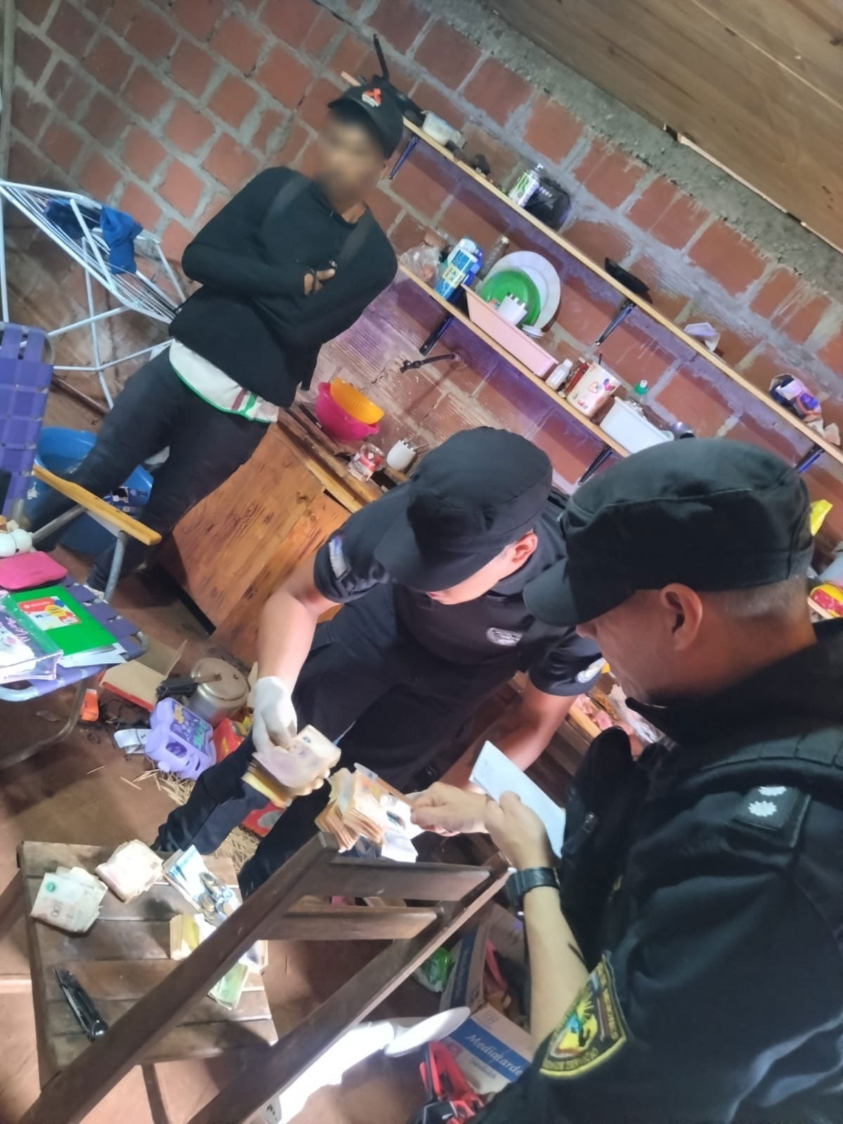 Durante el allanamiento, los efectivos incautaron 89 envoltorios con clorhidrato de cocaína, un revólver calibre 22, otro calibre 38, siete municiones, cinco teléfonos celulares y una balanza de precisión. También hallaron 404.000 pesos argentinos y 527 reales, que se presume serían producto de la comercialización de drogas.