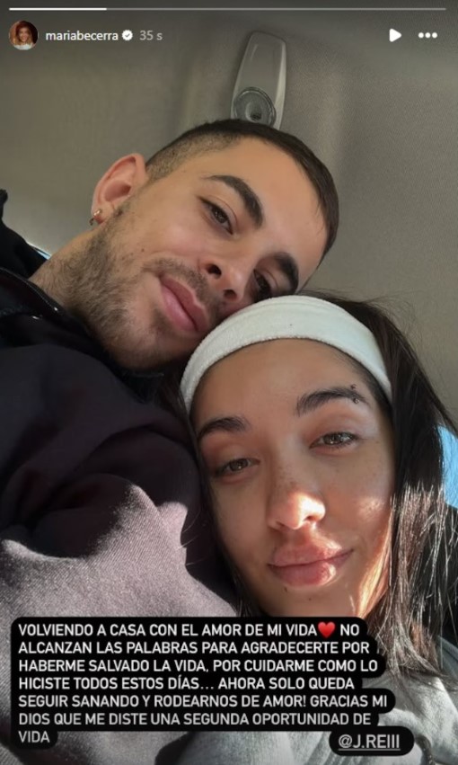 La buena noticia para la artista llegó en la mañana del sábado, cuando recibió el alta médica y lo celebró con todos: “Volviendo a casa con el amor de mi vida”, escribió junto al emoji de un corazón y sobre una foto con su novio, J Rei, sostén de todas estas horas difíciles.