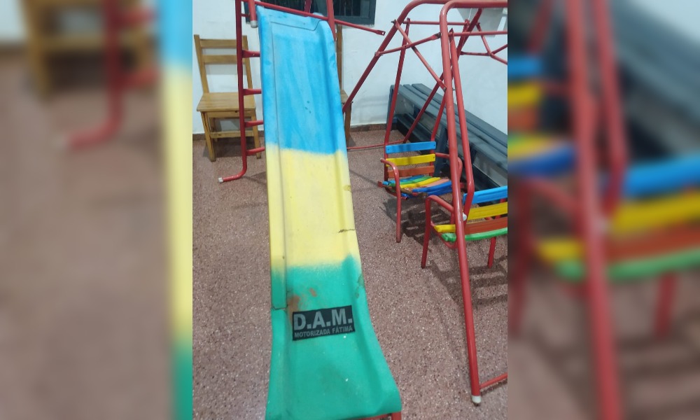 Al ser interceptados, los sospechosos transportaban un tobogán y un balancín tipo sube y baja, los cuales habían sido arrancados de su base de hierro en una plaza cercana.