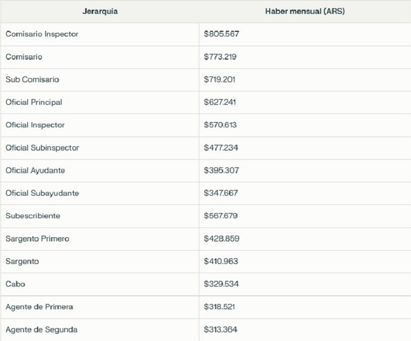 Antes de este aumento, el salario más bajo en la Policía de Establecimientos Navales era de $305.373 para el grado de agente de segunda, mientras que el más alto alcanzaba los $785.024 para los comisarios inspectores.