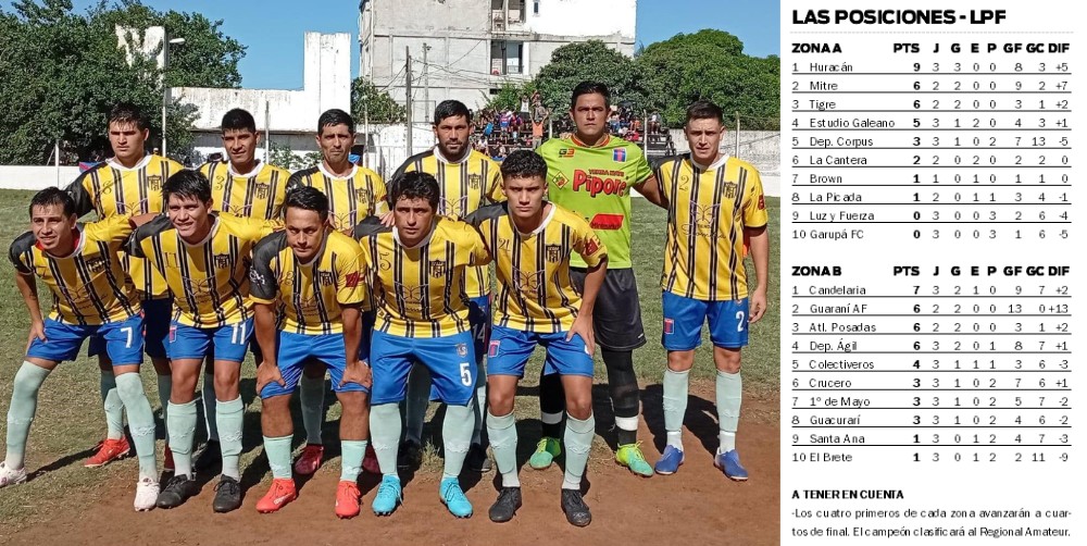En lo que va de la fecha, recordemos que se dieron los siguientes resultados: Estudio Galeano 3 – Luz y Fuerza 2, Huracán 2 – Garupá 0, Guacurarí 2- Santa Ana 1, Candelaria 4 – Crucero 3, Dep. Ágil 5 – 1º de Mayo 3, El Brete 1 – Colectiveros y Mitre 7 – Deportivo Corpus 2.