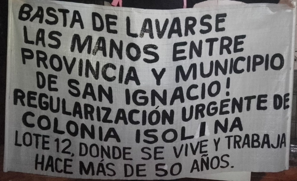 Una de las referentes de la protesta, Norma Delima, explicó a la FM 89.3 Santa María de las Misiones que “tenemos familias que ya estamos pasando la cuarta generación” en esas tierras, pero “a partir de 2011 tuvimos un problema con privados: se presentó el supuesto dueño y en 2017 tuvimos una orden de desalojo“, a pesar de que en aquel tiempo ya venían “trabajando conjuntamente con la Subsecretaría de Tierra y la Subsecretaría (hoy Ministerio) de Agricultura Familiar”, al punto que “ellos nos fueron encaminando e hicimos el empadronamiento en el IPRODHA, que es lo que hoy por hoy nos está sosteniendo“.