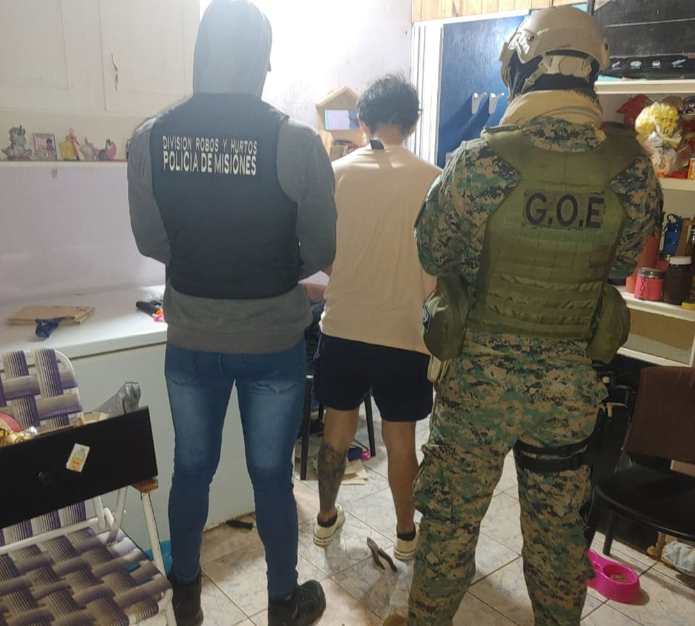 En el marco de una investigación por robos cometidos en viviendas y comercios de los barrios Ripiera y Fátima, en Garupá, la Policía de Misiones llevó a cabo este sábado dos allanamientos simultáneos en el barrio Las Tacuaritas II de Posadas. Como resultado, fue detenido un hombre de 27 años y se recuperaron varios elementos electrónicos de interés para la causa.