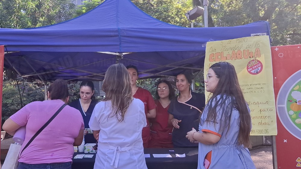 Para visibilizar y acercar información a la comunidad, esta mañana en la Plaza San Martín de Posadas, profesionales, estudiantes de nutrición, miembros de asociaciones afines y pacientes estuvieron presentes con sus stands, entregando folletos a la comunidad y también con feria de alimentos sin tacc.