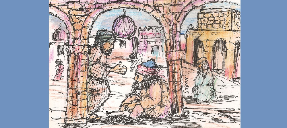 Recuerdo la hora, el sol se circunscribía cercano al mediodía (la oración del Dhuhr), mientras esperaba al almuédano, para que desde el alminar de la mezquita llamara al pueblo a la oración. En ese momento al levantar la vista, y contemplar a la distancia, pero aún al alcance de mis ojos, sobre el final de la calle, se postraba un mendigo; allí se encontraba, parecía hacerle culto extremo a la inmovilidad, y con una paciencia infinita como si la misma se hubiera acumulado por años sobre su alma, y fuera el fruto preciado, encarnado por el cultivo piadoso de su paz interior.