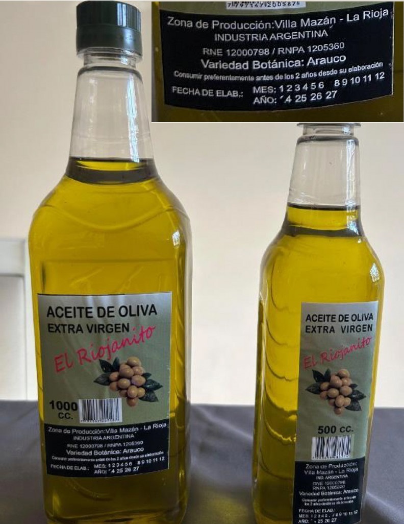 El primero de los casos es el “Aceite de oliva extra virgen” de la marca El Riojanito y producido en Villa Mazán (La Rioja), el cual “carece de registros de establecimiento y de producto, y está falsamente rotulado al utilizar números de RNE y RNPA inexistentes, resultando ser en consecuencia un producto ilegal”, advierte la ANMAT.