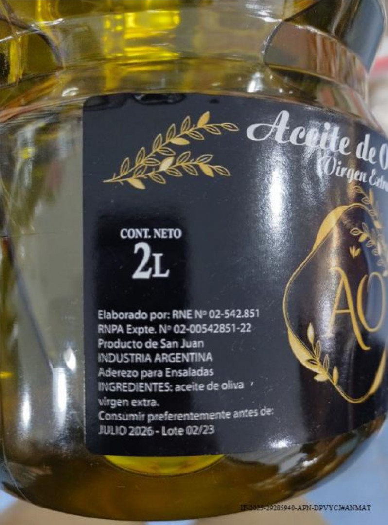 Un caso similar es el del “Aceite de oliva virgen extra” de la marca AO, elaborado supuestamente en San Juan pero que carece de registros de establecimiento y de producto, por lo que se considera ilegal.