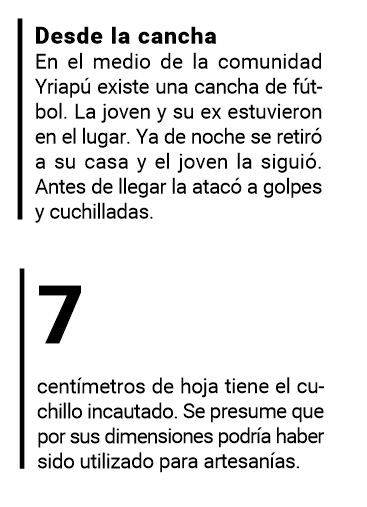 La víctima fue identificada como Juana Maciel, quien fue encontrada en un trillo a algunos metros de su casa dentro de la aldea. Fue alrededor de las 20 del domingo cuando la comisaría recibió el alerta acerca de una persona sin vida en la comunidad guaraní ubicada a unos 600 metros al este de la ruta 12, y 1.000 metros antes de la rotonda principal de Puerto Iguazú.