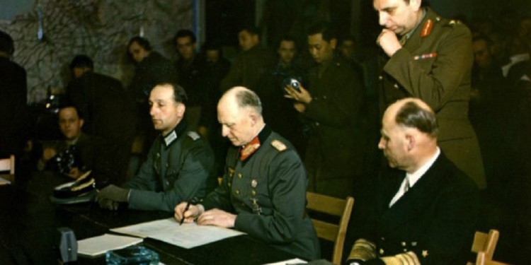 El 7 de mayo, en el cuartel general de las fuerzas aliadas en Reims (Francia), el general Alfred Jodl firmaba la capitulación de Alemania. Tres meses después se rendiría Japón tras las bombas atómicas lanzadas por Estados Unidos en Hiroshima y Nagasaki.