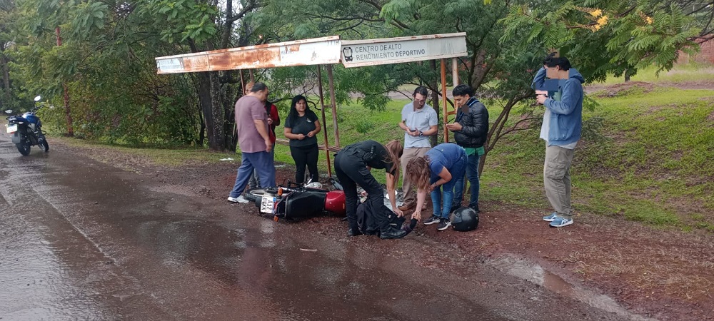 Esta tarde en Posadas, una mujer que circulaba en una motocicleta Motomel S2 150cc. sobre la ruta 12, a la altura del Parque del Conocimiento, despistó y cayó inconsciente , en cercanías de una parada de colectivos urbano de pasajeros.