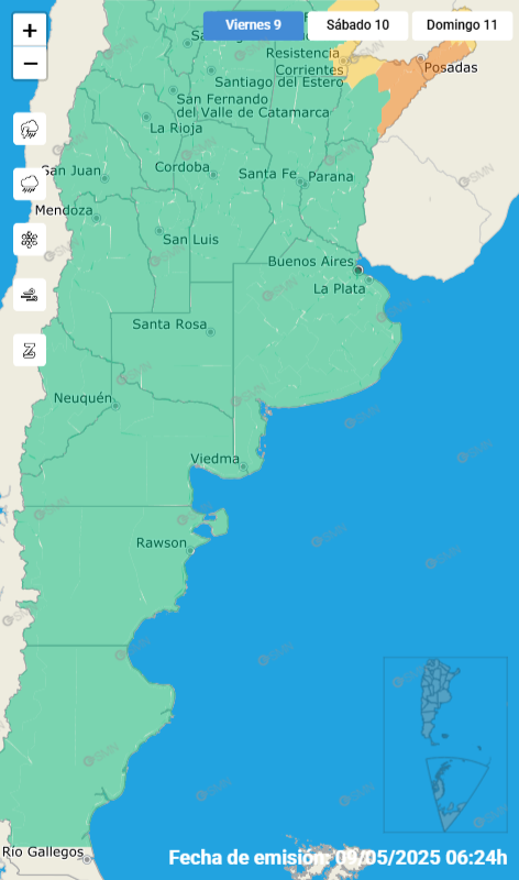 Por su parte, la Dirección de Meteorología y Prevención de Riesgos Naturales (OPAD) comunicó que en Posadas el tiempo se mantendrá nublado, con lluvias y cálido. Las temperaturasbajarían a partir de la tarde, con mínimas de 19°.